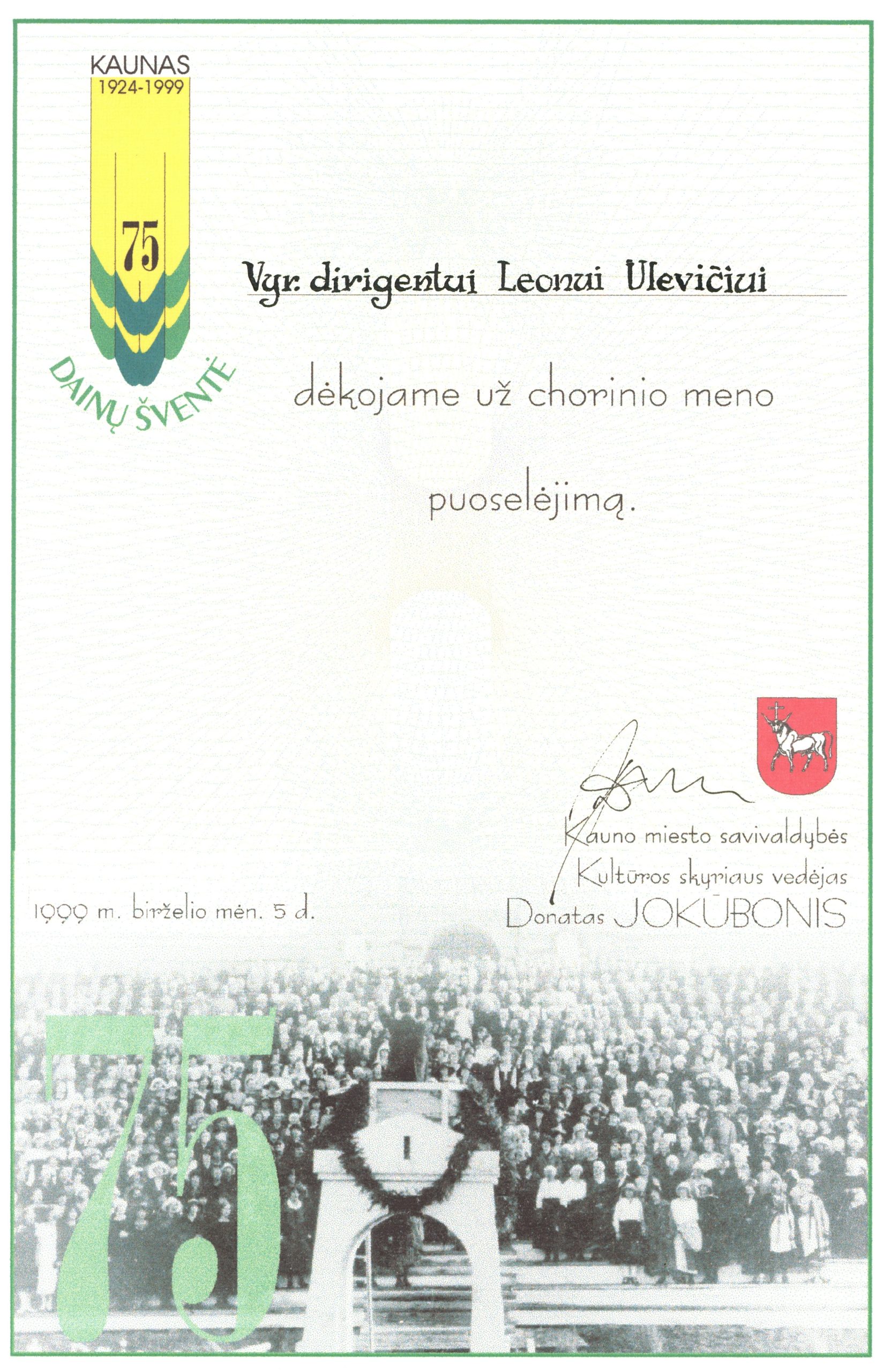 1999 m., minint 75-ąsias pirmosios Dainų dienos Kaune (1924 m.) jubiliejines metines, jis dar kartą buvo pakviestas tapti šios ypatingos Dainų šventės vyriausiuoju dirigentu.